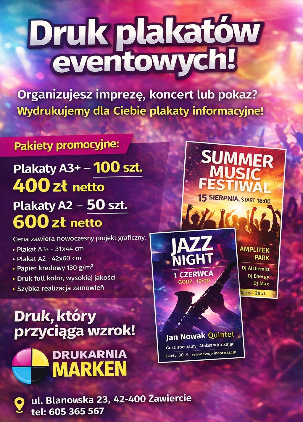 DRUK PLAKATÓW NA SZTUKI – NAJNIŻSZE CENY W REGIONIE – REALIZACJA OD RĘKI!
