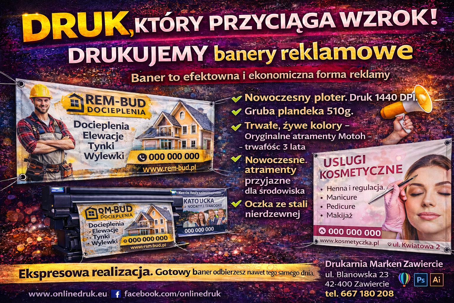 Drukujemy najwyższej jakości banery reklamowe o żywych i trwałych kolorach.